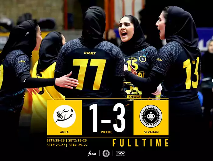 به گزارش اخبار اصفهان دو تیم والیبال بانوان فولاد مبارکه سپاهان و شهر آرکا البرز در چارچوب هفته هشتم رقابتهای لیگبرتر والیبال بانوان، امروز سهشنبه سیام دی از ساعت ۱۴ در سالن انقلاب کرج مقابل یکدیگر صفآرایی کردند و در پایان بازی با نتیجه سه بر یک بازی به سود تیم سپاهان به پایان رسید.