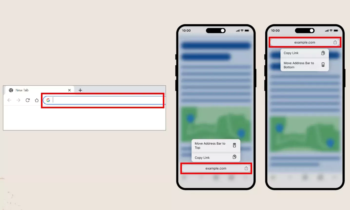 هر سایتی، آدرسی مشخص دارد که به زبان انگلیسی نوشته میشود و این آدرس را باید در جایی به نام «نوار آدرس» یا «آدرس بار» مرورگر وارد کرد. روی کامپیوتر، این نوار تقریبا همیشه در بالای صفحه قرار دارد. روی موبایل، بسته به مرورگری که استفاده میکنید و تنظیمات آن، نوار آدرس میتواند بالا باشد یا پایین. که در تصویر بالا مشخص است.