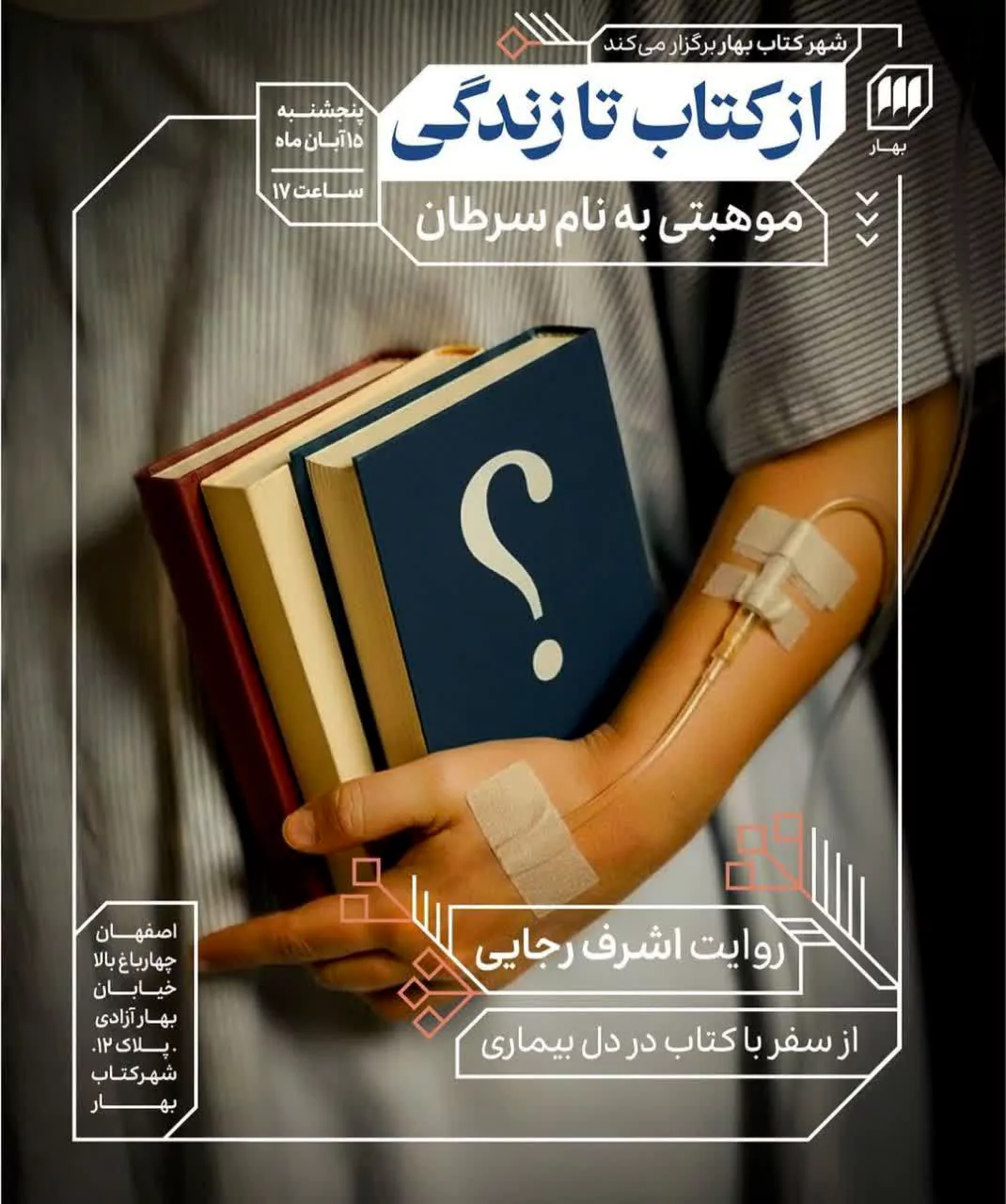 غروب، آرام آرام از پنجرهی شهر کتاب بهار فرو مینشست. نوری که از میان شیشهها عبور میکرد، بر چهره کتابها میافتاد و هوا را نرم میکرد. صدای خانم رجایی هنوز در ذهن جمع بود، چون زمزمهای که نمیخواهد تمام شود. شاید «موهبتِ سرطان» نامی paradoxical به نظر برسد، اما در دلش حقیقتی روشن نهفته است: